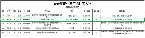 3月12日,《公益时报》社公示“2020年度中国百名社工人物”名单,万象城人文与艺术学院王弘扬老师秉承社会工作价值理念,积极投身社会工作事业,不怕困难、深入实际,解决社会问题,在社工岗位做出突出成绩,顺利通过三轮审核,当选“2020年度中国百名社工人物”。
