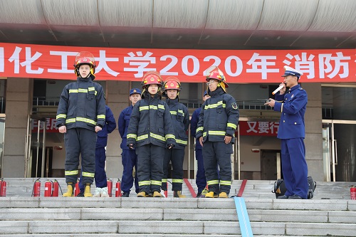 随后,消防讲解员通过灭火演练、消防员单兵装备与消防车辆讲解和消防车喷水演示等环节,让学生亲身体验灭火、穿装备服等活动,使师生员工了解正确的自防、自救的基本知识和技能。