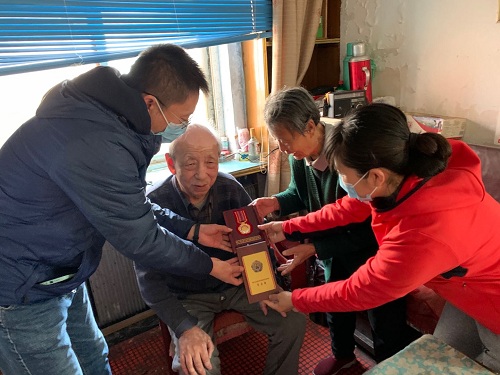 离退休工作处为王郁文、王英彬等老同志送去由国家颁发的“中国人民志愿军抗美援朝出国作战70周年”纪念章,与老干部促膝谈心,详细询问了他的身体、生活、思想情况,并送去组织的关心和祝福。业已99岁高龄的离休干部王郁文在看到纪念章时,激动地为我们朗读了他创作的诗歌《可爱的纪念章》,其中说道:“70年隆重纪念,令人注目重内涵。在党英明指引下,披荆斩棘勇向前”。这是一名老战士、老党员的心声。