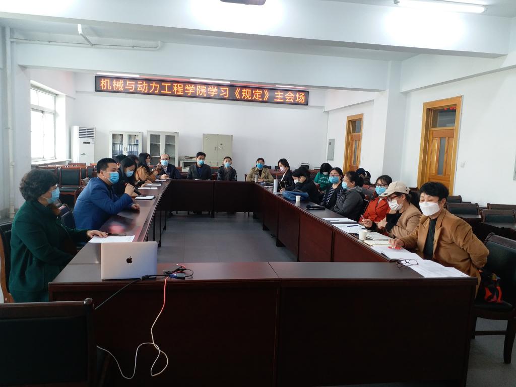 4月29日下午2:00,机械与动力工程学院在致本楼A座308室,利用腾讯会议以主会场及教师个人进入会议室的方式,组织全学院80余名教师集体学习了《新时代高等学校思想政治理论课教师队伍建设规定》。学院党政班子、教研室主任及部分骨干教师20余人在主会场参加学习。学习活动由党总支书记付广艳主持。