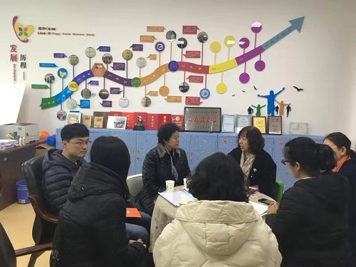 11月21日下午,沈阳悦欣社工机构中心及东港市大东街道春雨社会工作服务中心主任于宏等4人到万象城乐和社会工作服务中心参观交流。