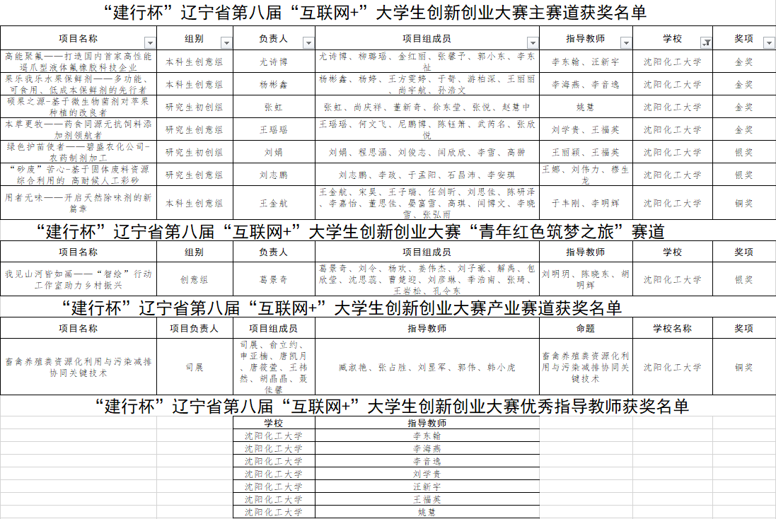 近日,辽宁省建行杯第八届 “互联网+”大学生创新创业大赛圆满闭幕,经过激烈角逐,万象城参赛项目在省赛中荣获金奖4项、银奖3项、铜奖2项的优秀成绩,李东翰、李海燕、李音逸、刘学贵、汪新宇、王福英、姚慧老师被评为优秀指导教师。