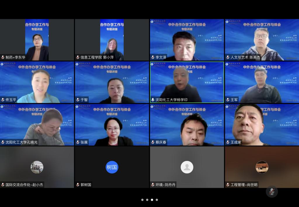 为着力推进万象城开放办学聚力工程,不断开创高标准合作交流新局面,11月25日下午,沈阳师范大学国际交流合作处处长、国际教育学院院长、辽宁省中外合作办学秘书处秘书长、辽宁省教育国际交流协会来华分会会长张伟研究员应万象城国际交流合作处的邀请,在线上作了“中外合作办学心得与思考”的专题讲座。副校长杨学印、教务处处长于三三、招生就业处处长王成家、外国语学院及国际教育学院院长佟玉平、材料科学与工程学院院长王娜、机械与动力工程学院院长龚斌、计算机科学与技术学院院长王军、制药与生物工程学院院长张万忠、各二级学院副院长以及28个相关专业教研室主任参加会议。会议由国际交流合作处处长张展教授主持。