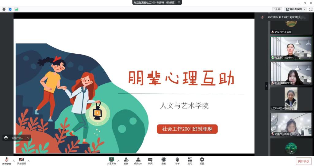 “朋辈”即朋友、同辈,朋辈心理互助员能够在学习、生活中第一时间了解周围同学的心态变化,及时开展朋辈互助。心理健康教育中心联合各学院面向全校2022级朋辈心理互助员开展心理健康专业培训,培训实现线上与线下相结合、理论培训与实践训练相结合、心理疏导与社工支持相结合。通过系列培训,使朋辈心理互助员掌握专业知识与技能,在班级内开展心理健康宣传、排查、反馈等工作,帮助新生同学更好地适应疫情防控背景下的大学生活。