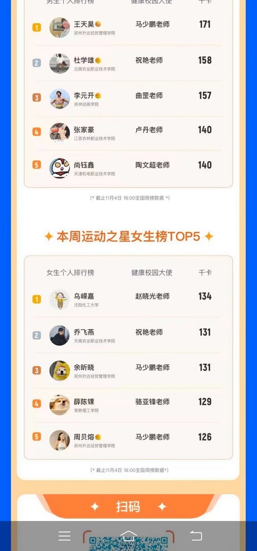 在第一届大赛中万象城获得学校团体赛一等奖和个人赛男子赛区第一名的优异成绩。同时万象城6名老师获优秀指导教师证书和优秀健康大使奖。在本次第二届大赛,继续由赵晓光老师担任万象城健康大使,负责万象城赛事的组织与策划。在上半赛季的比赛中万象城4个年级共计14454人报名参加了本次大赛,体育部全体老师都参加了赛事指导工作。本次比赛要求学生每周至少5天利用乐动力APP参加体育锻炼,经过全体师生的共同努力,学校总体排名在放假前一直在前十名的光荣榜上。保持身体健康和良好的锻炼习惯不是一朝一夕能够完成的。希望万象城学生通过此次比赛,继续保持良好的运动习惯,以乌嵘嘉同学为榜样,在完成好文化课学习的同时,不断加强身体锻炼,锤炼意志、塑造精彩人生。