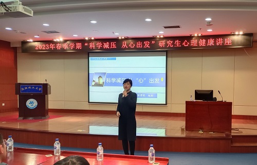 为进一步提高研究生心理健康教育工作的针对性和实效性,把心理健康教育融入到研究生日常管理实践中,缓解和减轻研究生读研期间的各种压力和焦虑,党委研究生工作部于2023年4月3日下午1时30分,在图书馆5楼学术报告厅举办了“科学减压 从‘心’出发”研究生心理健康讲座。研工部部长孟野出席讲座,各学院研究生辅导员及近200名研究生代表参加,讲座由研工部副部长许艳华主持。