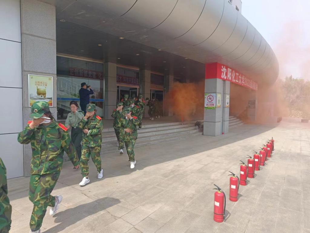 消防演练分为三个部分:疏散逃生演练、灭火演练、消防员单兵装备与消防车辆展示。疏散逃生演练包括火灾报警、消防队员抢险、紧急疏散等环节。模拟火场设在大学生活动中心礼堂,参加演练的同学在火灾发生后,迅速反应,在现场疏导员的引导下,用毛巾、衣物掩住口鼻,快速有序地疏散至楼外安全地带。