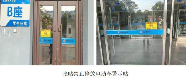 为了进一步强化《关于严禁电动车违规停放充电的通知》的要求,保卫处组织楼宇和宿舍管理员召开协调会,分发严禁电动车在楼内停放警示贴,并在各个楼宇门口醒目位置张贴,提醒师生严禁将电动车在楼内停放,并严禁电动车在楼内停放充电,有效提升校园消防安全氛围,营造良好校园环境。