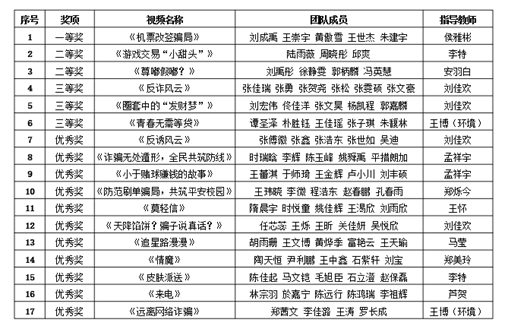 本次大赛自10月8日正式启动,共分“通过微信接到刷单返利活动”、“虚假网络投资理财杀猪盘”、“冒充‘公检法’诈骗”、“通过‘机票改签’点击陌生连接被诈骗”、“情感作为诱饵要求做任务”、“网络游戏虚假游戏道具、账号交易(演唱会门票等)”、“注销‘校园贷’诈骗”、“冒充电商客服(物流)退款等诈骗”、“冒充熟人(领导)借钱诈骗”、“虚假购物诈骗”十个赛道,历时近一个月。在各学院的精心组织下,同学们的踊跃报名,指导教师悉心指导,共提交参赛作品101部。经过层层筛选、优中选优,最终评选出一等奖1个,二等奖2个,三等奖3个,优秀奖11个。