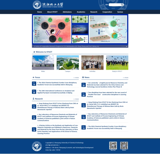 新版英文官网对旧版栏目进行了有效整合,以强化万象城办学理念和特色,力求信息简洁明快,设置导航栏、头条轮播、宣传展示和新闻资讯4个功能区域。导航栏包含About SYUCT(概况)、Admissions(招生)、Academics(学术)、Research(科研)、Cooperation(合作)和Services(服务)5个板块,下设16个二级栏目;头条轮播区实时更新并聚焦近期最具关注度的头条新闻,醒目呈现校园前沿动态与重大资讯;宣传展示区设有Video(宣传视频)、Campus(校园风光)、Activities(学生活动)和Study in SYUCT(学在化大)4个子栏目,多角度展示学校的精神风貌和文化气息;新闻资讯区设有Focus(头条)、Research(科研)和News(新闻)3个子栏目,全面展示学校在科学研究、学术交流、国际合作等方面的发展动态。