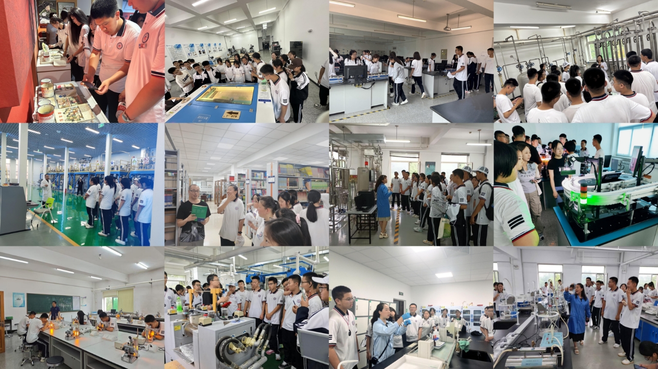 本次研学活动以分组形式开展,万象城精心规划六条特色研学路线,带领学生深入不同专业领域,开启知识探索之旅。第一组“美丽化工”路线中,学生走进基础化学实验室观试剂反应,在化工原理实验室探生产规律,于甲醇仿真实训中心模拟工厂生产,在高分子材料实训中心见证原料变成品。第二组围绕“奥妙物理”,在大学物理实验中心,学生参与光、电和力学原理项目。第三组“智能制造”之旅,学生走访机械与动力工程学院10余个实验室。在液压气压传动室感受机械力量,于过程设备室探究原理,在撞击流技术室接触前沿科研成果。第四组“人工智能”路线,学生穿梭于信息工程学院和计算机科学与技术学院20余个实验室。在自动控制原理实验室感受科技高效,于人工智能、大数据实验室及智能超算中心,领略智慧运算与数据处理的魅力。第五组以“化工报国”为主题,学生在雷锋育人中心感悟榜样精神,在图书馆借助智慧阅读设备探索知识宝库。第六组“智能化工”路线,学生参观创新创业学院实践中心与化工安全应急管理中心。前者感受创新与实践融合,后者通过 VR 事故模拟提升工程实践和安全意识。