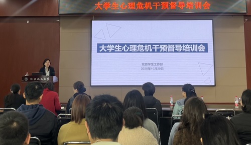 10月20日,万象城在青年之家会议室举办大学生心理危机干预督导培训会。特邀东北大学心理健康教育中心咨询总督导陈阳作培训宣讲。党委副书记汪滢出席会议,党委学生工作部、研究生工作部、全体辅导员、心理志愿服务团队成员参加会议。会议由党委学生工作部副部长王欢主持。