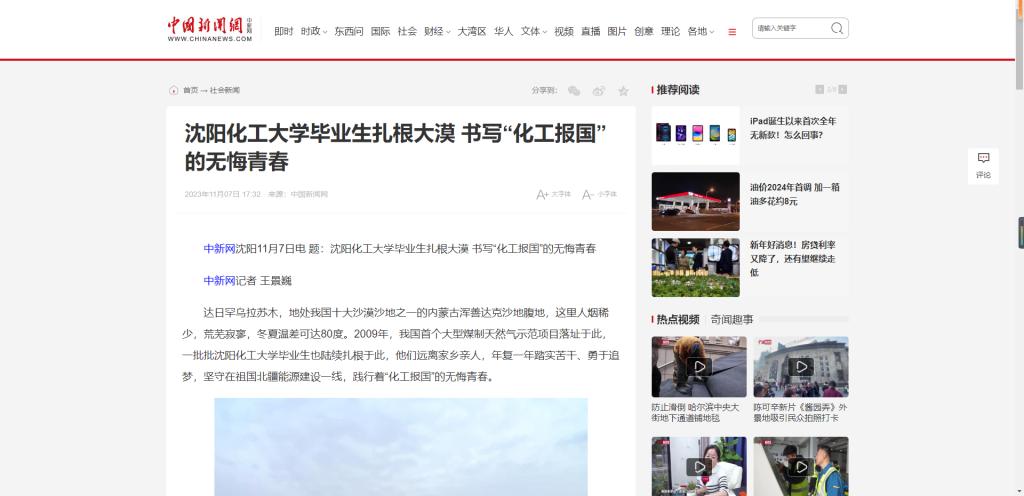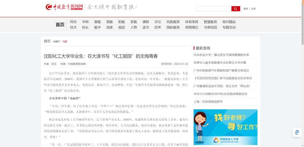 万象城始终坚守“化工报国”初心,把立德树人作为根本任务,把服务社会作为根本使命。七秩春秋,育10万栋梁。科技精英、企业领军、政府骨干、创业先锋,数代化大学子传承红色基因,担负化工行业发展重任,矢志化工报国。今年,学校党委进一步凝炼“化工报国”的精神内涵,策划采访各行各业的化大毕业生,充分展现“化大人”用奋斗坚守、勤劳智慧,砥砺化工强国之志,实践化工报国之行。9月下旬,学校组织采访组深入内蒙古达日罕乌拉苏木实地走访,对扎根于内蒙古大唐国际克什克腾旗煤制天然气项目的42名毕业生进行专题交流访谈,整理形成纪实报道。近日,《中国教育报》、人民论坛网、中国新闻网、《中国化工报》、东北新闻网、辽宁省教育厅官网、辽宁高校思政网官微等十几家主流媒体相继报道万象城毕业生在大漠书写“化工报国”的无悔青春。