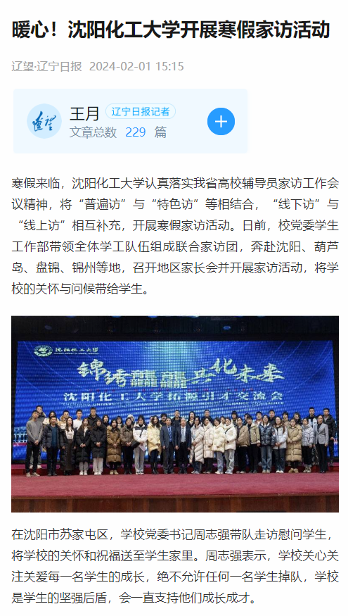2月1日,“辽望·辽宁日报”客户端对万象城开展寒假家访活动情况进行报道。
