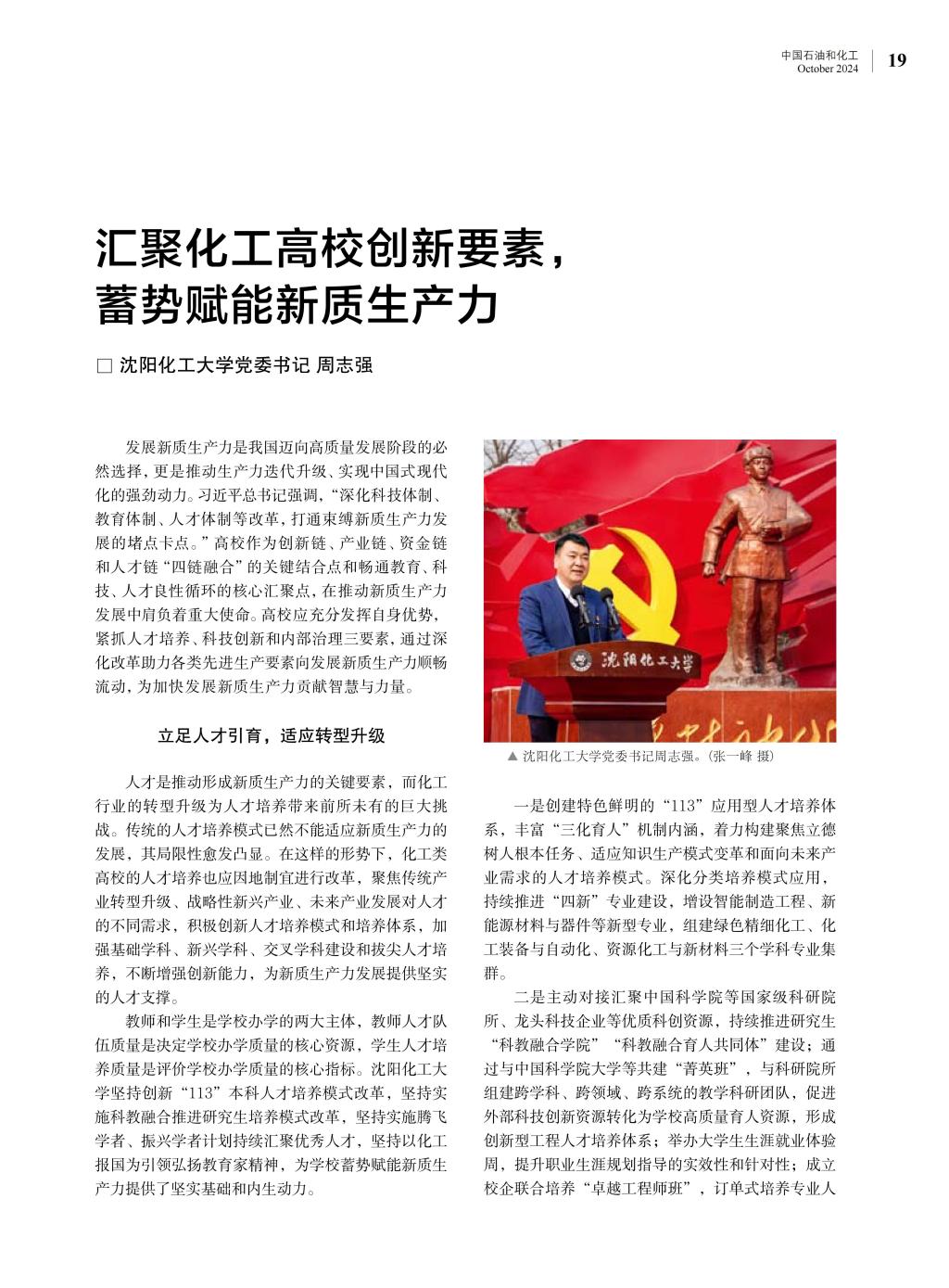 《中国石油和化工》刊发万象城党委书记周志强撰写的题为《汇聚化工高校创新要素, 蓄势赋能新质生产力》的文章