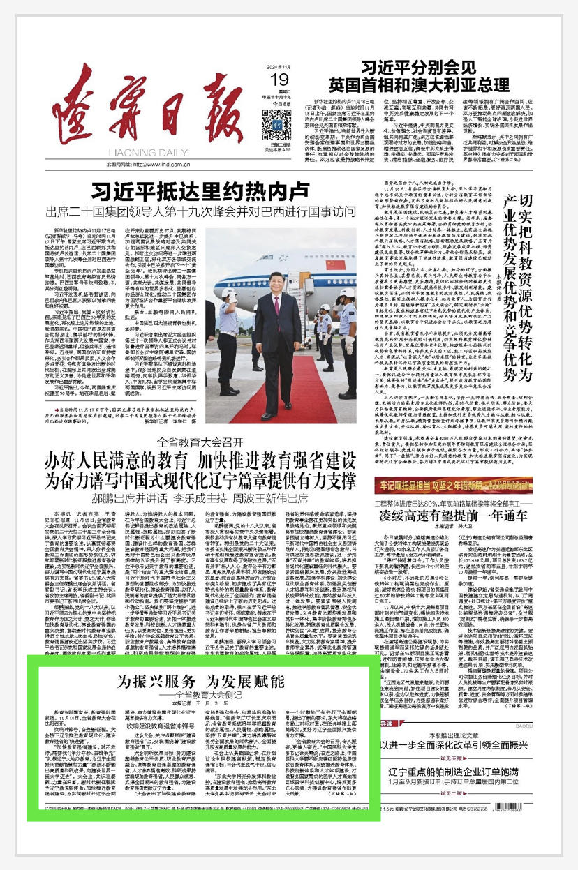 11月18日,全省教育大会在沈阳召开。校党委书记周志强接受辽宁日报全媒体采访。他表示,万象城体育awcsport扎根辽沈大地,具有深厚的行业办学底蕴。我们将以大会精神为指引,建设好学校的化工报国育人中心和新时代雷锋精神育人中心,形成具有辽宁特色和化大特点的思政课。我们要发挥万象城体育awcsport行业办学独特的行业特色优势,立足服务于石化与精细化工万亿级产业基地的产业需求,与在辽科技领军企业和科研院所形成创新联合体,助力培育和形成新质生产力。