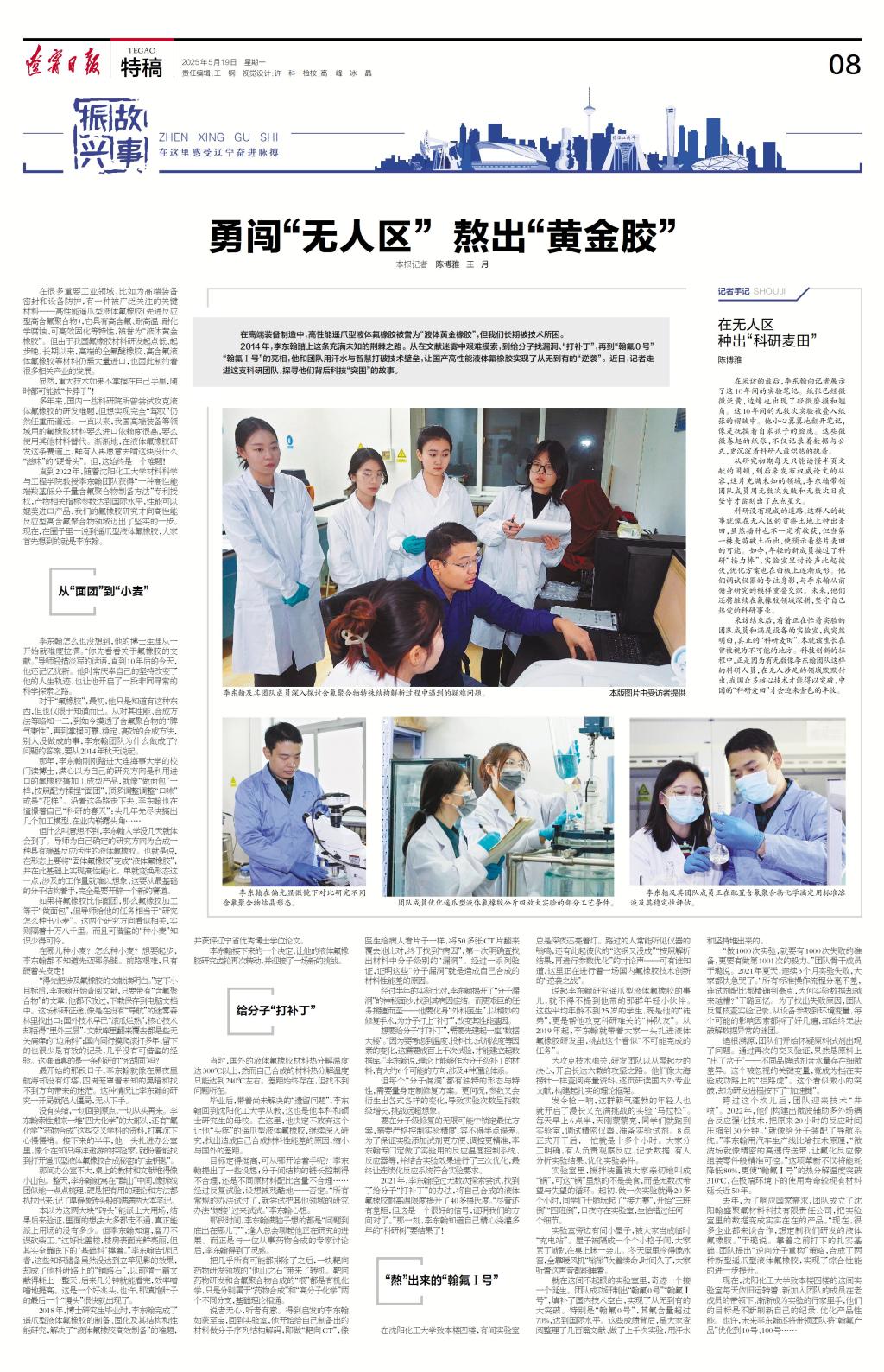 去年,为了响应国家需求,团队成立了沈阳翰盛聚氟材料科技有限责任公司,把实验室里的数据变成实实在在的产品。“现在,很多企业都来谈合作,想定制我们研发的液体氟橡胶。”于璐说。靠着之前打下的扎实基础,团队提出“逆向分子重构”策略,合成了两种新型遥爪型液体氟橡胶,实现了综合性能的进一步提升。