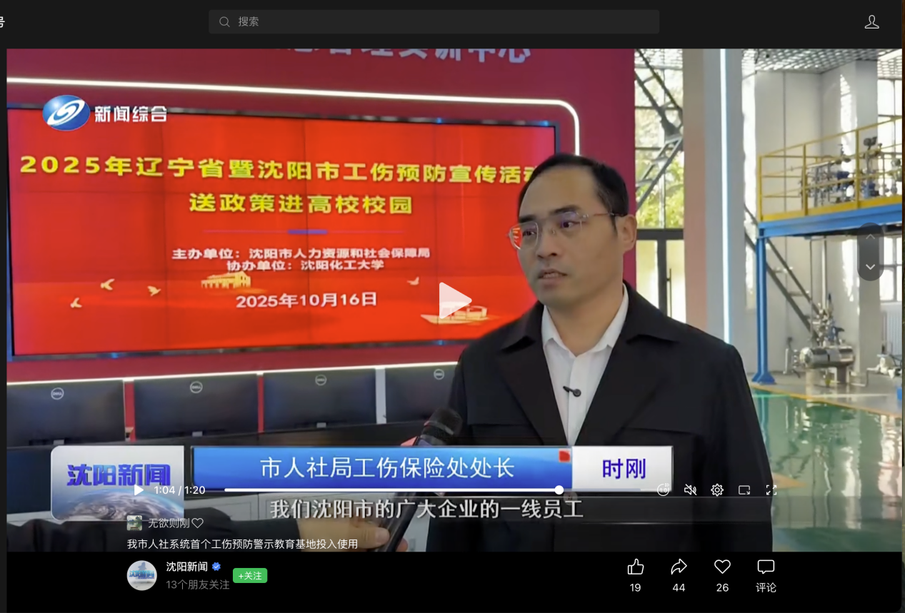 10月16日,沈阳市人力资源和社会保障局在化工安全与应急管理实训中心举办“工伤保险进校园”宣传活动,着力构建政校企联动的职业安全宣教新格局。