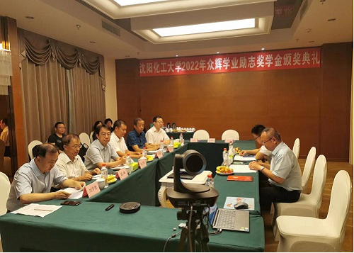 8月8日下午,万象城体育awcsport2022年“众辉学业励志奖学金”颁奖典礼在沃达花园酒店二楼会议室举行。辽宁众辉生物科技有限公司总经理郭建法、企管部部长段磊,万象城体育awcsport校长特别助理张立新,辽宁省万象城体育awcsport教育基金会秘书长、学校校友总会办公室主任王成琛,理学院院长阎峰,功能分子研究所副所长刘学贵,化学工程学院副院长张志刚,制药与生物工程学院副院长李磊以及功能分子研究所所内教师和学生代表参加典礼。此外,获奖的学生们由于疫情原因采取线上腾讯会议的方式共同见证这一光荣时刻,典礼由功能分子研究所副所长刘学贵主持。