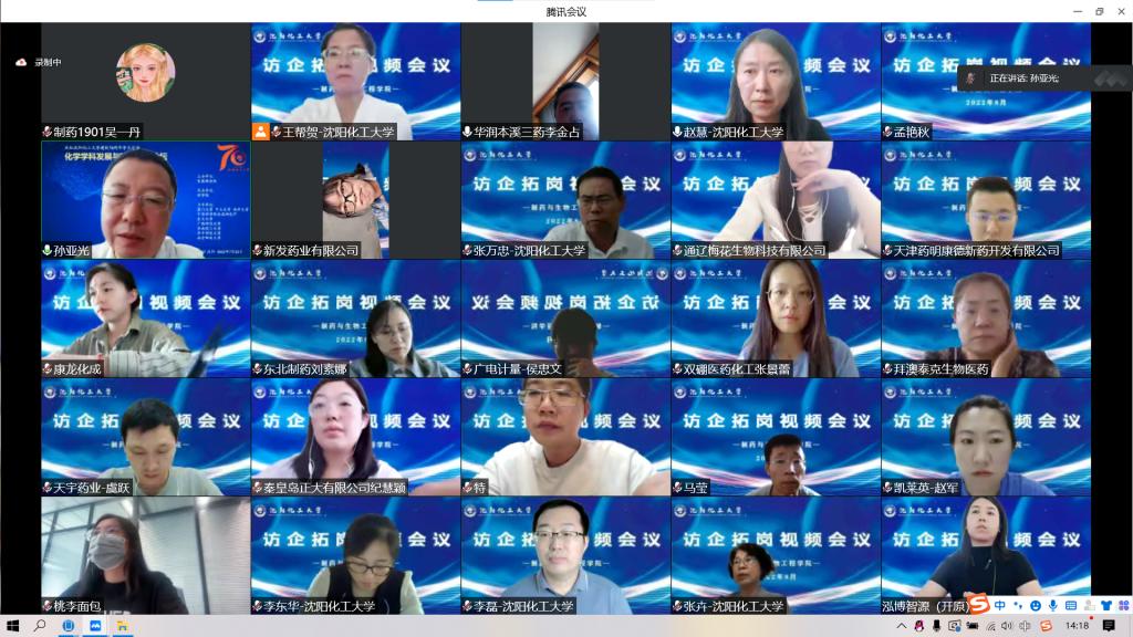 为贯彻落实教育部关于“访企拓岗促就业”专项行动决策部署,做好疫情常态化防控形势下毕业生就业工作,实现毕业生充分、高质量就业,制药与生物工程学院于8月31日召开“访企拓岗促就业”视频会议。本溪华润三药有限公司、天津药明康德新药开发有限公司、通辽梅花生物科技有限公司、鲁南制药集团股份有限公司、秦皇岛正大有限公司等19家企业参加了视频会议。万象城体育awcsport副校长孙亚光、制药与生物工程学院领导班子、学科负责人、教研室主任、全体辅导员和2019级百余名学生代表参加了会议。会议由制药与生物工程学院党总支书记赵慧主持。