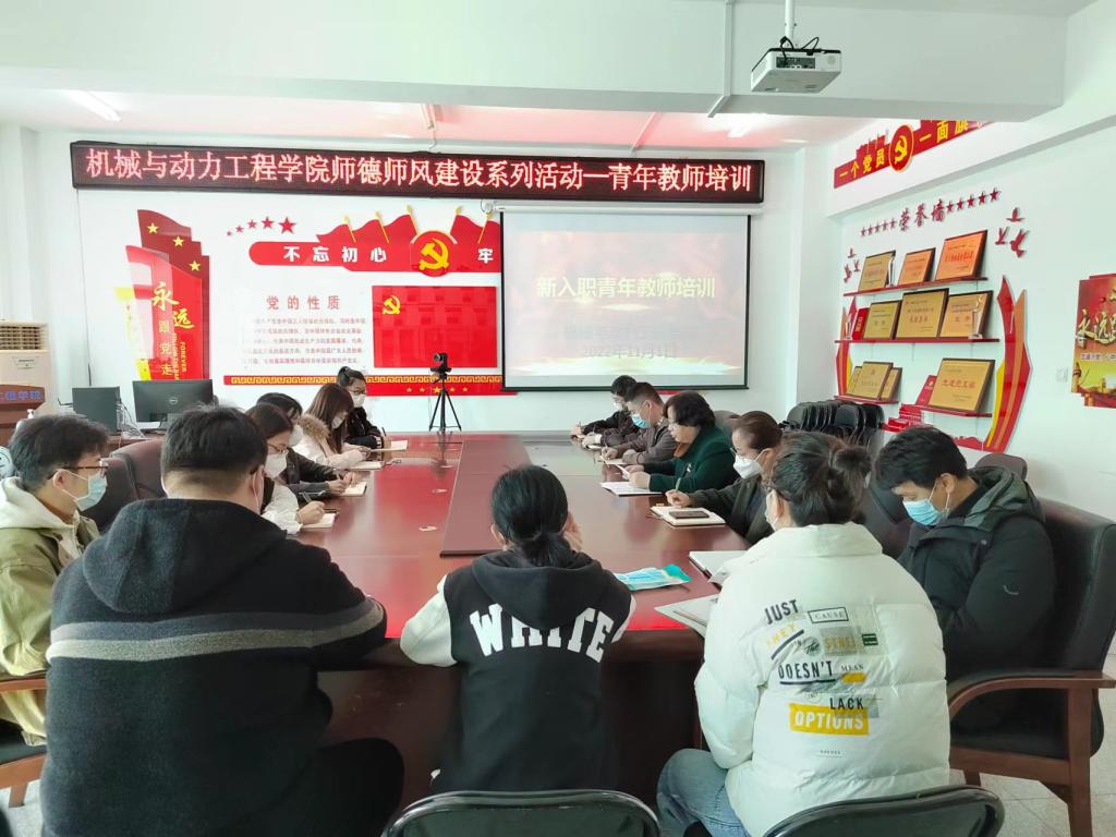 师德师风建设系列活动之一是青年教师培训。11月1日,机动学院党委组织新进青年教师刘博书、李珊珊、卢贺等10人,进行师德师风及业务培训,会议由党委书记付广艳教授主持并主讲,首先学习了《高校教师职业道德规范》、《新时代高校教师职业行为十项准则》以及习近平总书记关于“四有好老师”“四个引路人”“四个相统一”重要讲话精神,其次是王莹副书记、郭树国副院长分别结合分管工作,对青年教师提出相应要求,最后付广艳书记结合自己从教30多年的工作经历,分享了自己在教学、科研及管理等方面的工作经验,并对青年教师提出了相应的要求,要求青年教师都要做师德高尚的四有好老师,青年博士首先要在教学上站稳脚跟,过教学关,同时科学研究不断线,不断深入上台阶,并积极主动参与学院的建设等各项活动,为学院、学校大家庭添砖加瓦。