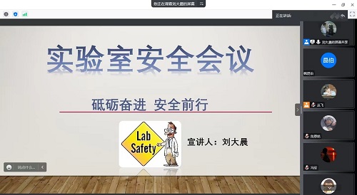 刘大晨教授首先肯定了同学们返校后的实验热情,强调了安全永远是第一位的。他以实验室中的水、电、气、压力等爆炸性事故为案例,警示同学们时刻绷紧安全这根弦。此外,为进一步提高研究生的实验室安全意识,材料学院近期将组织开展实验室安全考核,考核将落实到每个同学身上,让同学们真正重视起来,参与进来。
