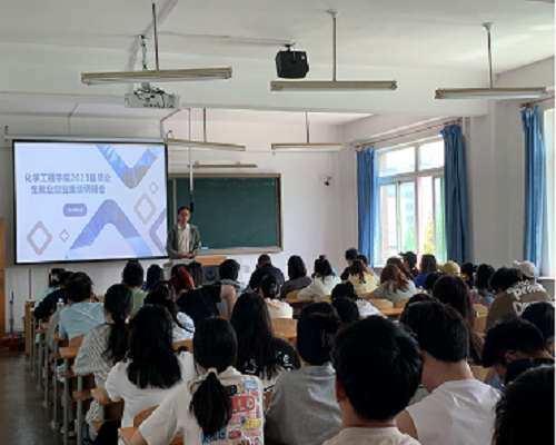 5月18日,化学工程学院在景唐楼405教室召开2023届毕业生就业创业座谈会。党委副书记余海军、本科毕业生辅导员王博、马娇和60余名2023届未就业本科学生参加会议。
