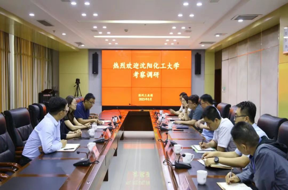 实地考察参观结束后,在园区凤凰大厦进行了校企交流座谈,滨州工业园党工委委员、管委会副主任李兴林主持会议并讲话。滨州工业园管委会副主任(挂职)刘蝈蝈,园区亚光纺织、中裕食品、三元生物、友泰科技、首建科技等企业和园区相关负责人参加会议。
