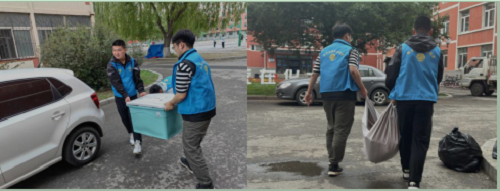 志愿者在3舍门口设立志愿服务点,为毕业生提供行李搬运等服务。师生志愿者们根据对接安排,相互配合,积极主动地帮助毕业生将一袋袋行李从宿舍楼搬运至校门口,减轻毕业生的离校负担。烈日炎炎,志愿者们用汗水和热情为毕业生们送去一份温暖,展现了学院真诚暖心的朋辈情,更彰显了学院学生志愿者们的责任与担当。