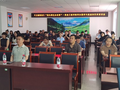 为深入学习贯彻习近平新时代中国特色社会主义思想主题教育,开展“我为师生办实事”活动,6月30日上午,信息工程学院党委特邀请辽宁中医药大学专家樊旭教授为师生员工举办营养与健康知识科普讲座,解决身体处于亚健康状态的问题。讲座由信息工程学院党委书记梁洪主持,学院教职工及部分学生代表聆听了樊旭教授的讲座。