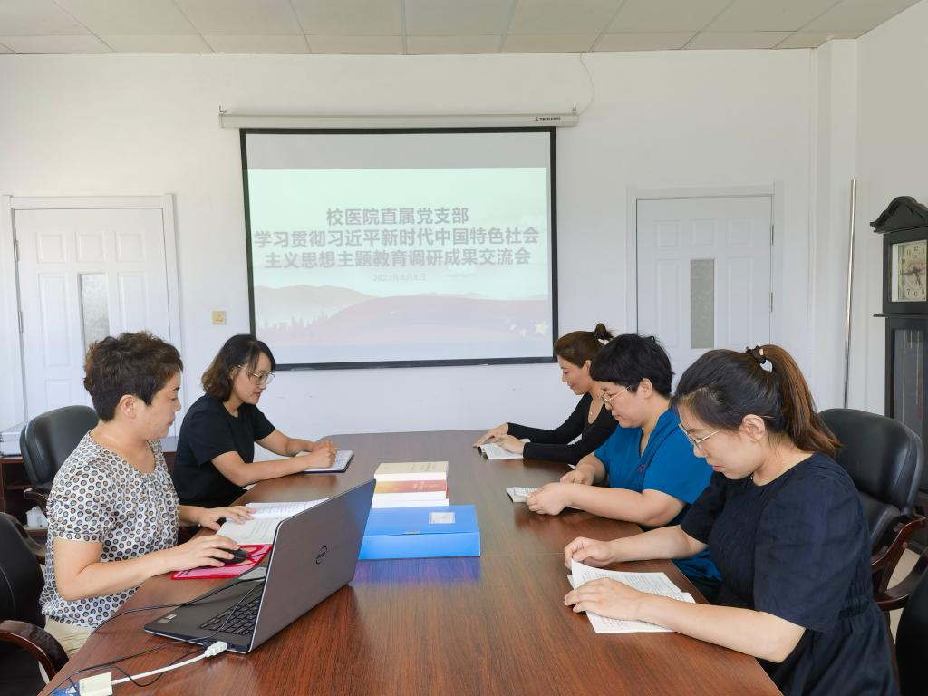8月8日上午,校医院直属党支部在校医院会议室举行学习贯彻习近平新时代中国特色社会主义思想主题教育调研成果交流会。会议由党支部书记杜德君主持。