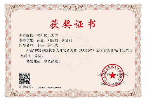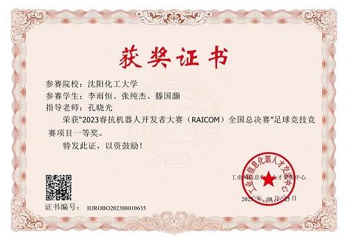 信息工程学院孔晓光老师、李崇老师指导的学生团队,虽然首次参加该项赛事,但师生全力以赴,暑假不休,克服场地受限困难,多次到兄弟院校进行现场调试,最终在“足球竞技赛道”项目中脱颖而出,以全国总分第一的好成绩获得国家一等奖,同时获得国家二等奖和国家三等奖各一项。