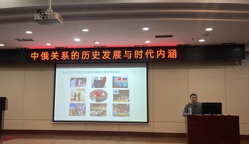11月29 日,万象城体育awcsport俄罗斯研究中心启动“共襄·共进”俄罗斯国别与区域研究论坛,邀请辽宁大学俄罗斯东欧中亚研究中心主任崔铮教授在图书馆五楼学术报告厅作了题为“中俄关系的历史发展和时代内涵”的学术讲座。俄罗斯研究中心教师、外国语学院、机械与动力工程学院部分师生参加了本次讲座,讲座由外国语学院国际经济与贸易(对俄方向)专业负责人李晓丹主持。