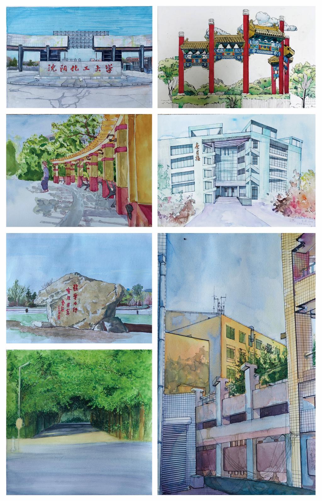 在写生活动中,同学们以青春之笔,通过水粉、速写、马克笔等多种绘画方式以物绘景,以景抒情,深入校园之中描绘五彩化大。或是金字塔、龙门、小院时光化大历史缩影下的红色育人之美;或是天鹅湖边草地旁绿色学术之美;或是时代元素与化大遗迹相结合的橙色创新之美;或是采集风土人情的蓝色开放之美;或是坚持创作学习的金色奋进之美。