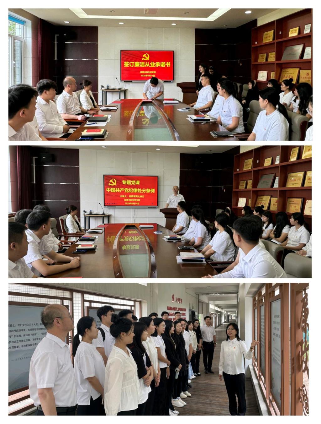 党委李丙文书记围绕《中国共产党纪律处分条例》内容支部党员同志专题党课,全体毕业生党员和在校生党员对党纪学习教育有了更深的理解,精神层面得到再次洗礼,大家纷纷表示在今后的工作和生活中,要严格遵守中国共产党纪律处分条例和《中国共产党廉洁自律准则》等相关规定,增强廉洁意识,保持思想先进性,做到廉洁自律,努力为党和人民做出更大贡献。