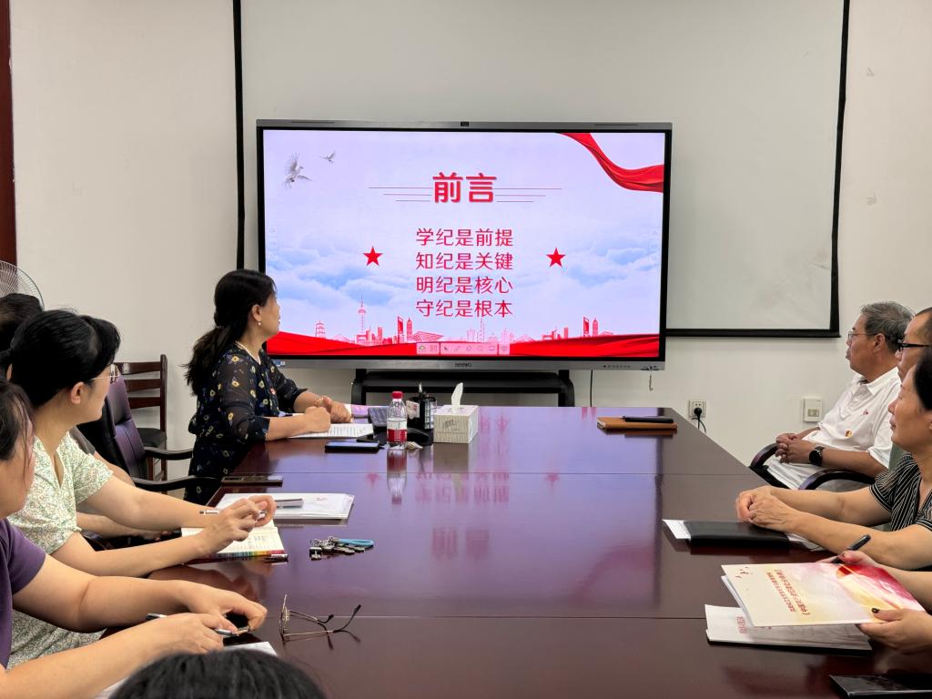 党支部书记赵霜霜讲题为《学纪 知纪 明纪 守纪》的党纪学习教育纪律党课,主要内容涵盖以下六个方面:严守政治纪律,涵养良好政治生态严守组织纪律,增强组织纪律性;严守廉洁纪律,永葆清廉本色;严守群众纪律,密切血肉联系;严守工作纪律,规范履职用权;严守生活纪律,锤炼道德品行。党课内容理论联系实际,并通过典型案例、特别是发生在教育系统的典型案例,采取以案说纪方式,深入开展警示教育,提高全党遵规守纪的自觉性。
