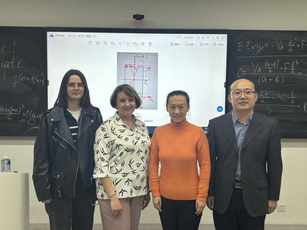 9月22日至10月15日,哈尔滨师范大学高等教育学专业孙芳副教授团队与万象城机械与动力工程学院《材料力学》课程中外教师联合授课团队开展了关于“中外教师‘同步’教学模式”的交流。孙芳副教授(图1,右二)团队自2023年5月起,与机械动力工程学院苏勇副教授和俄罗斯伊尔库茨克国立理工大学Perelygina Aleksandra副教授组成三方合作团队,共同开展教学研究。