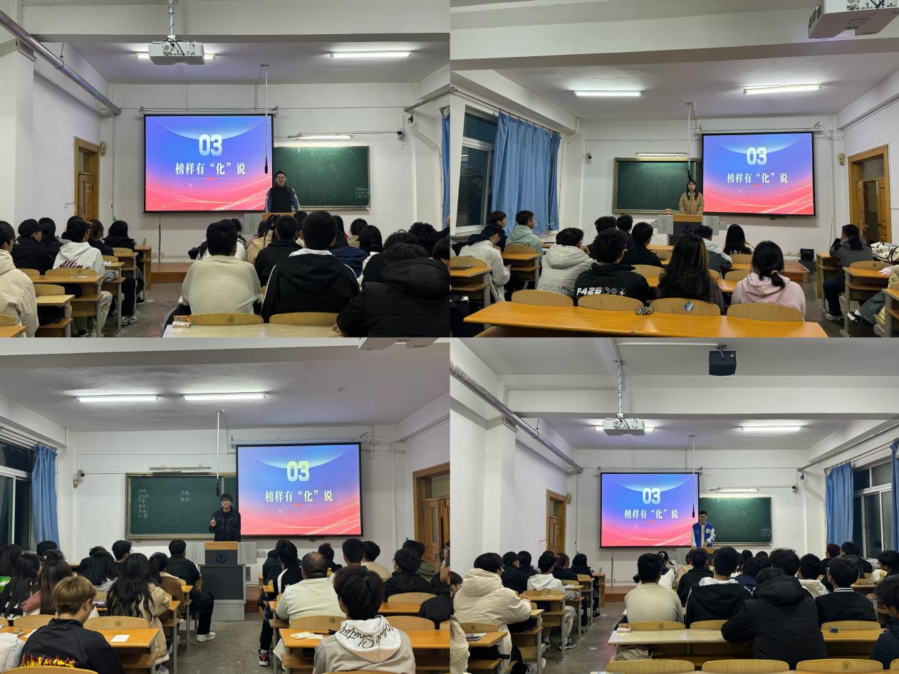 保研至大连理工大学的本科生、第二党支部李雯珊同学为上晚自习的大一新生进行5场学业指导讲座,根据不同课程提出不同的学习方法。对于无机化学和高等数学课程,重点在理解最基本概念,同时做好每节课和每个章节的归纳总结;对于大学外语课程,则要着重记忆单词、语法,平时多练习口语并举一反三。学生党员们纷纷走进低年级班级,开展“榜样有‘化’说”活动,根据自身经验和新生即将面对的问题进行宣讲答疑,为做好期末考试考前复习和大学生职业生涯规划打好基础。