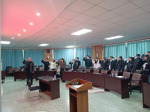 党委书记李丙文以“书写清廉人生,担当青春使命”为主题为毕业生上了一堂生动的党课。通过多个典型案例教育毕业生党员要筑牢廉政防火墙,知敬畏、存戒惧、守底线,要始终将廉洁自律刻印在心,内化为言行准则。随后,李丙文书记带领全体参会党员重温入党誓词。最后,毕业生党员再次参观学校廉政长廊,并在《廉洁从业倡议书》上郑重签名。
