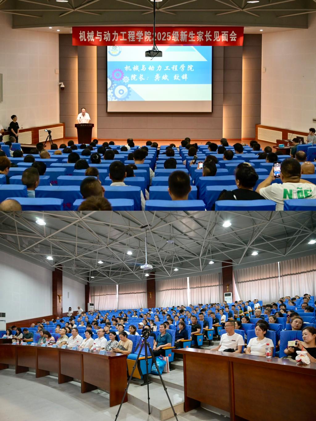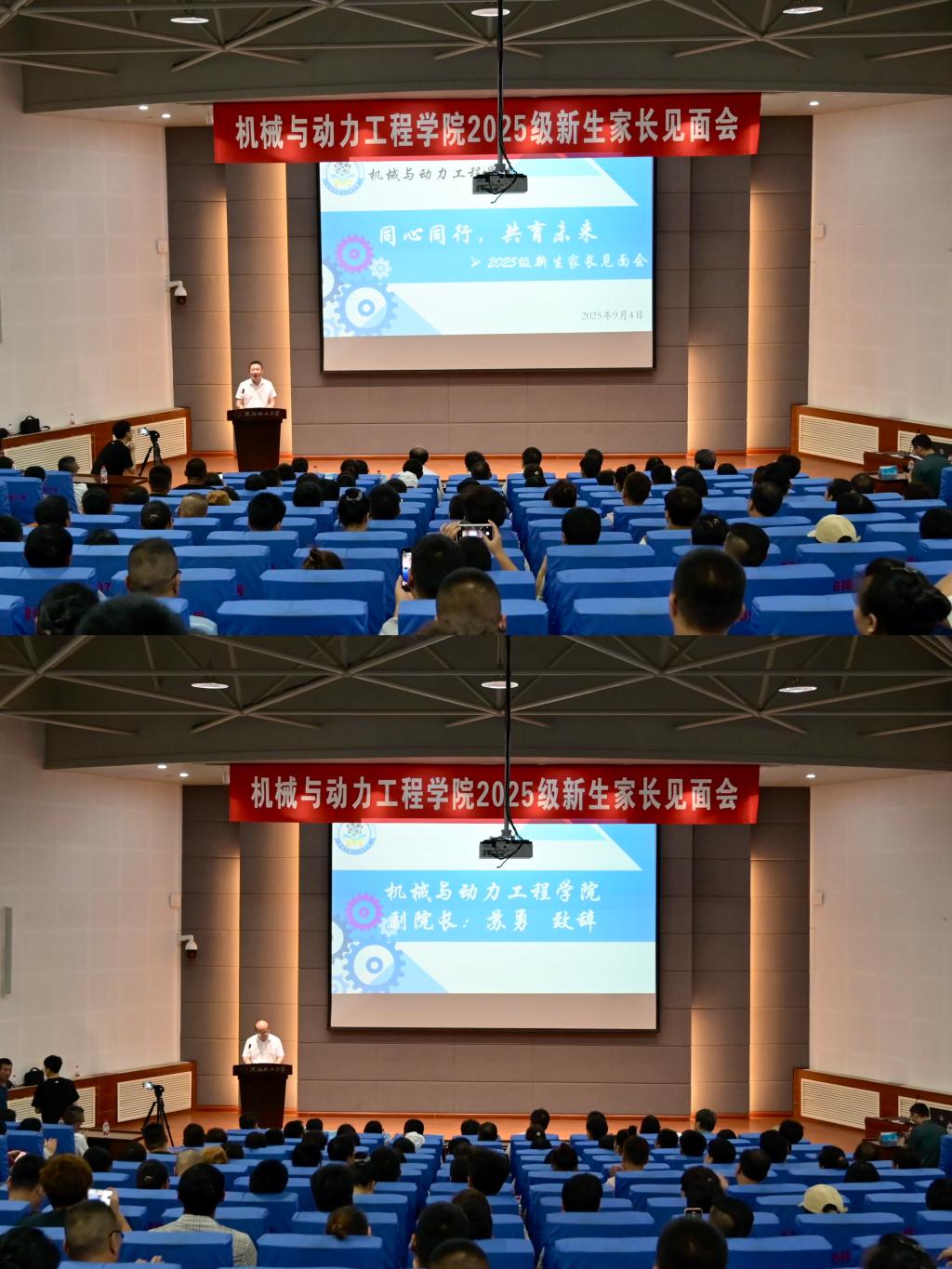 为搭建家校协同育人桥梁、助力新生平稳开启大学旅程,9月4日,机械与动力工程学院在碧帆楼304报告厅召开以“同心同行,共育未来”为主题的2025级新生家长见面会。学院领导班子、各教研室主任、专业课教师、新生辅导员以及2025级新生家长参加会议。会议由学院党委副书记李洪旭主持。