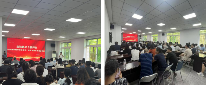 与此同时,在第41个教师节来临之际,中共中央总书记、国家主席、中央军委主席习近平给全国特岗教师代表回信,提出殷切希望,并向全国广大教师和教育工作者致以节日祝贺和诚挚问候。全体教职工共同观看《习近平给全国特岗教师代表回信》视频以及教师主题视频《教育家精神万里行—献给第41个教师节》,激励教师们继承和发扬老一代科学家艰苦奋斗、科学报国的优秀品质,大力弘扬勇攀高峰、敢为人先的创新精神,为建设科技强国贡献力量。