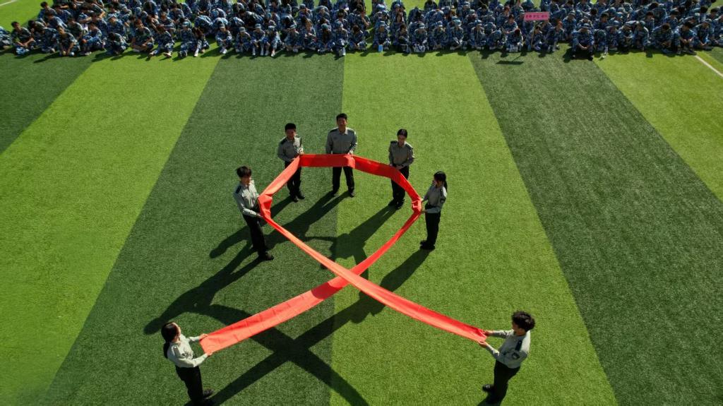 “防艾”趣味运动会上,来自各学院的800余名军训教官与同学踊跃参与。特别是防艾拔河、爱的抱抱等五项独具特色的答题+运动”比赛项目现场气氛热烈活泼,运动场上教官与同学们精神饱满、斗志昂扬,口号声此起彼伏,充分展现青春活力与积极向上的精神风貌。