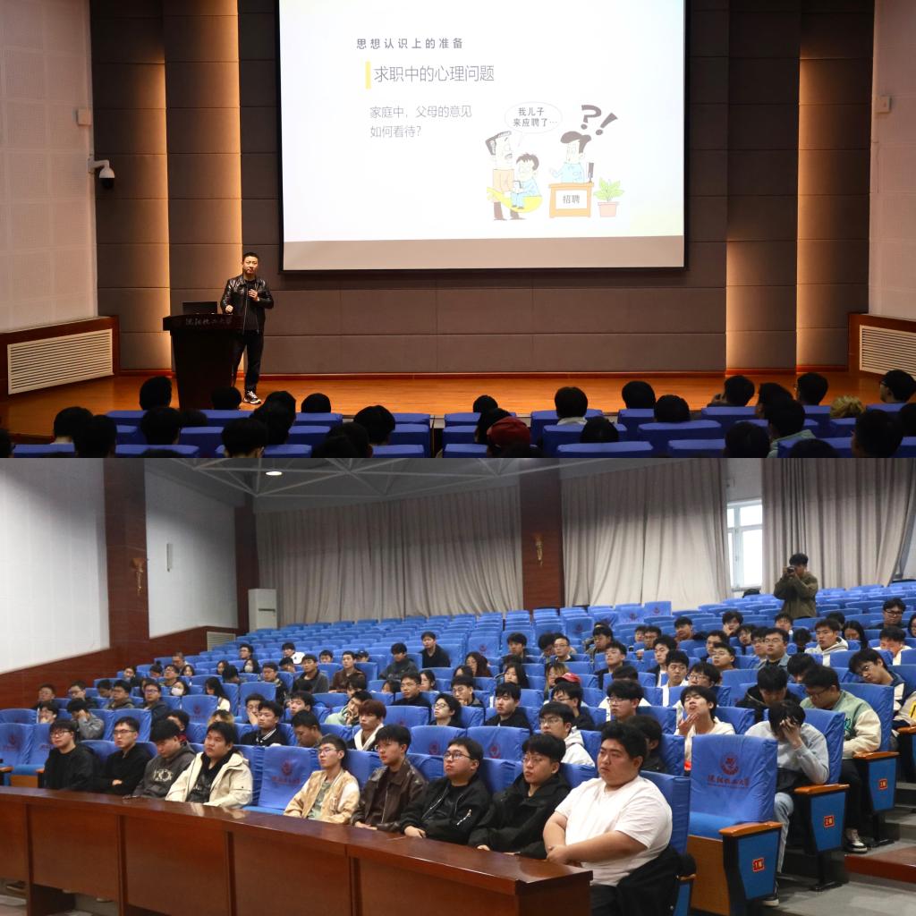 李洪旭从当前就业环境出发,结合近年来学院毕业生就业数据,分析了国有企业与民营企业不同的用人需求和选拔标准。他表示,在就业形势复杂多变的背景下,学生应当深入剖析自身优势,结合国家发展战略和行业发展趋势,制定切实可行的求职目标。他指出,一份优质的简历应当做到"三个契合":与个人实际情况契合、与目标岗位要求契合、与行业发展方向契合,建议同学们通过反复打磨,使简历成为展现个人专业素养和综合能力的重要载体。