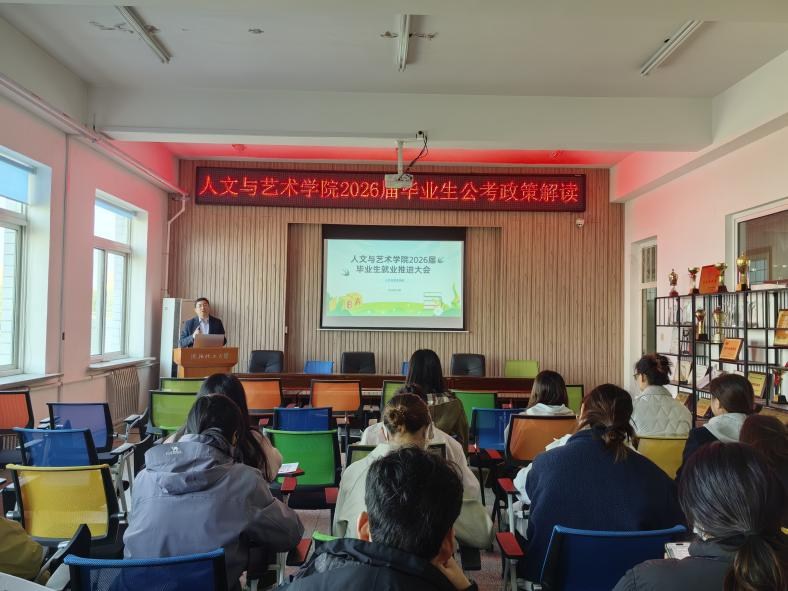 为帮助2026届毕业生第一时间精准把握国家公务员考试新动态,科学规划备考路径。1016日,人文与艺术学院在敬仲楼418教室启动系列就业指导之“公考政策解读”活动。学院党委副书记于丰刚、毕业生辅导员孙重阳、刘明玥出席会议,2026届本科生、研究生毕业生参会。