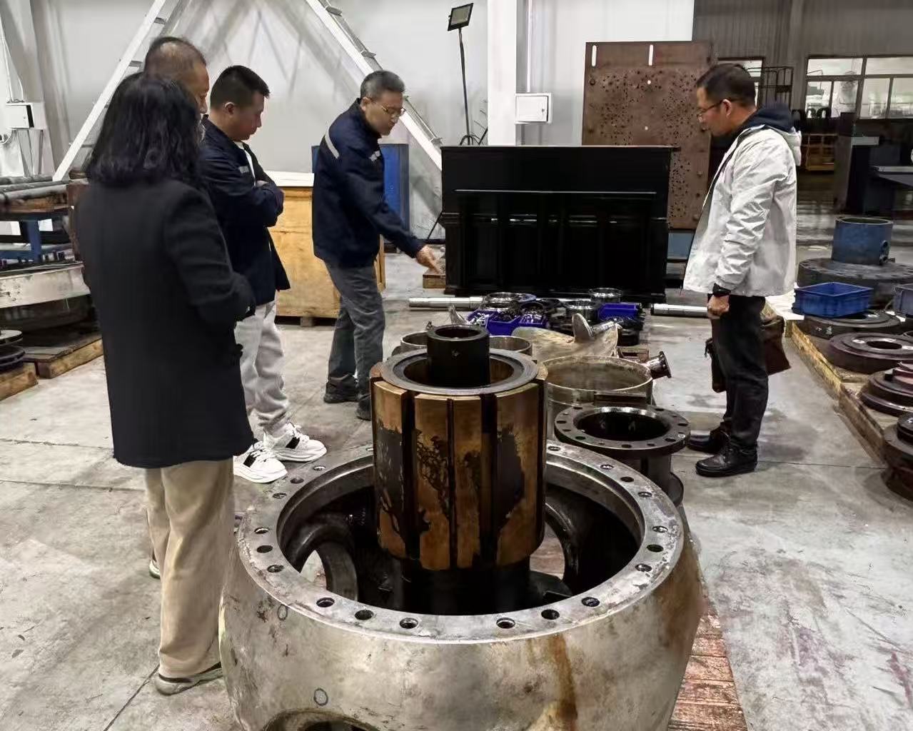 双方深入生产车间和测试平台进行现场调研。教师团队重点了解了液力耦合器等关键设备的运行机理、易损部位及现有技术瓶颈。结合企业设备运行实际情况,双方围绕接触界面的摩擦学强化、故障诊断与健康评估技术等合作方向进行了深入交流。