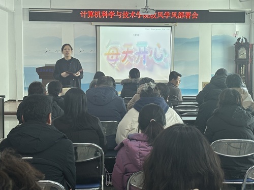 为深入贯彻落实学校关于加强教风学风建设的决策部署,扎实推进学院教风学风建设工作,12月3日,计算机科学与技术学院在517会议室召开了教风学风建设部署会。学院领导班子及全体教师参加了此次会议。