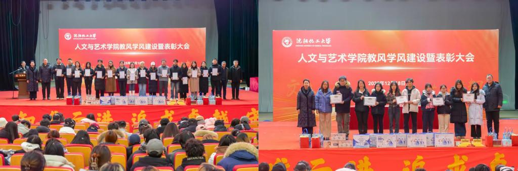 为深入贯彻落实学校关于加强教风学风建设的决策部署,落实立德树人根本任务,提升人才培养质量,12月18日,人文与艺术学院在大学生活动中心召开2025年教风学风建设暨表彰大会。会议由学院党委副书记于丰刚主持。