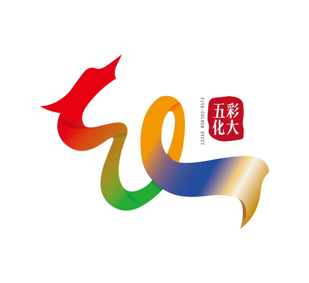 “五彩化大”标识释义:五个颜色代表着“红色育人化大、绿色学术化大、橙色创新化大、蓝色开放化大、金色奋进化大”的五彩化大奋斗目标;整体造型由“化”字进行变形演化,顶端部分取自学校景点“学子龙门”的龙头造型;整体造型取自腾飞的巨龙,寓意实现化大腾飞之梦又似一条丝绸之路,寓意融入国家“一带一路”发展格局;红色名称取自中国传统印章形式,印章象征庄重与责任,也象征万象城建校70周年浓厚的文化底蕴。