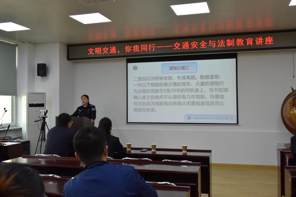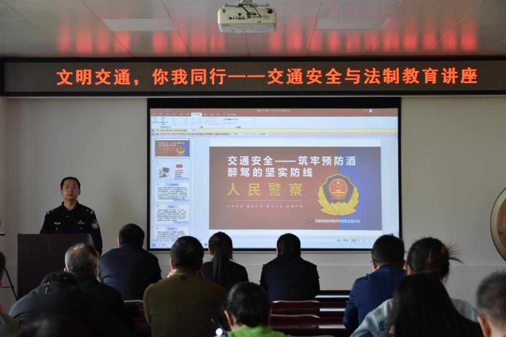 学校邀请开发区交通大队的交通科、事故科警官分别从交通事故案例和处置、交通安全警示、酒驾的危害三个方面的案例同与会的安全员进行交流讨论。
