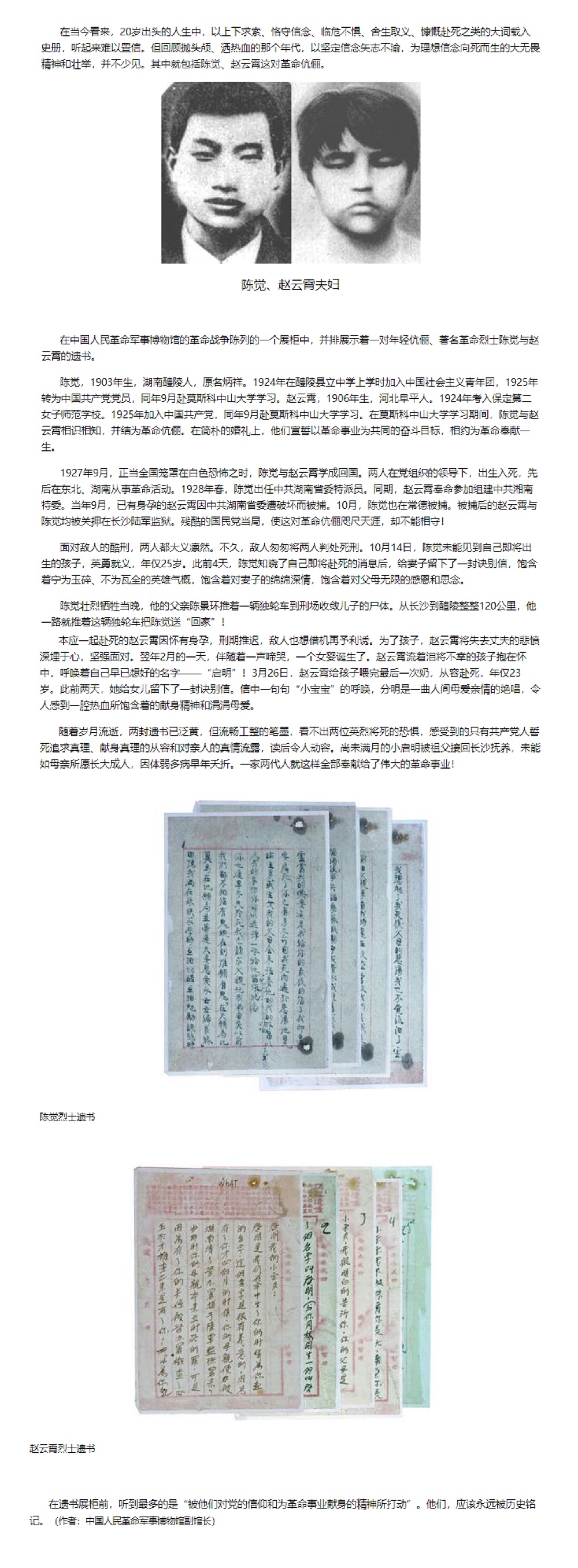 【学习党史•重温经典】一对革命伉俪的诀别书——读陈觉、赵云霄两封遗书有感